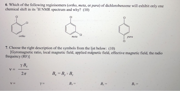 DE KIEVIET and CA. How ortho para meta groups of. 3132008 If you consider ortho-dichlorobenzene you would observe two signals in the 1H-NMR because there are two magnetically distinct types of protons in this molecule.